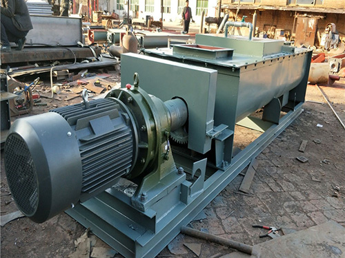 1、双轴搅拌机利用两根呈对称状的螺旋轴的同步旋转,在输送干灰等粉状物料的同时加水搅拌,均匀加湿干灰粉状物料,达到使加湿物料不冒干灰又不会渗出水滴的目的,从而便于加湿灰装车运输或转入其它输送设备。主要适用侵水性比较好的物料比如:火力发电厂、矿山等行业粉煤灰或类似物料加湿装车的场合.采用了摆线减速机,如有物料需用ZQ型减速机。